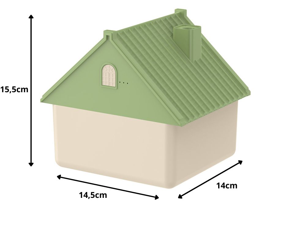 Mājiņas formas gaisa mitrinātājs ar 1 litra ietilpību ir stilīga un funkcionāla ierīce, kas efektīvi mitrina gaisu, uzlabojot elpošanas komfortu telpā. Tā oriģinālais dizains padara to arī par interesantu dekoratīvu elementu.