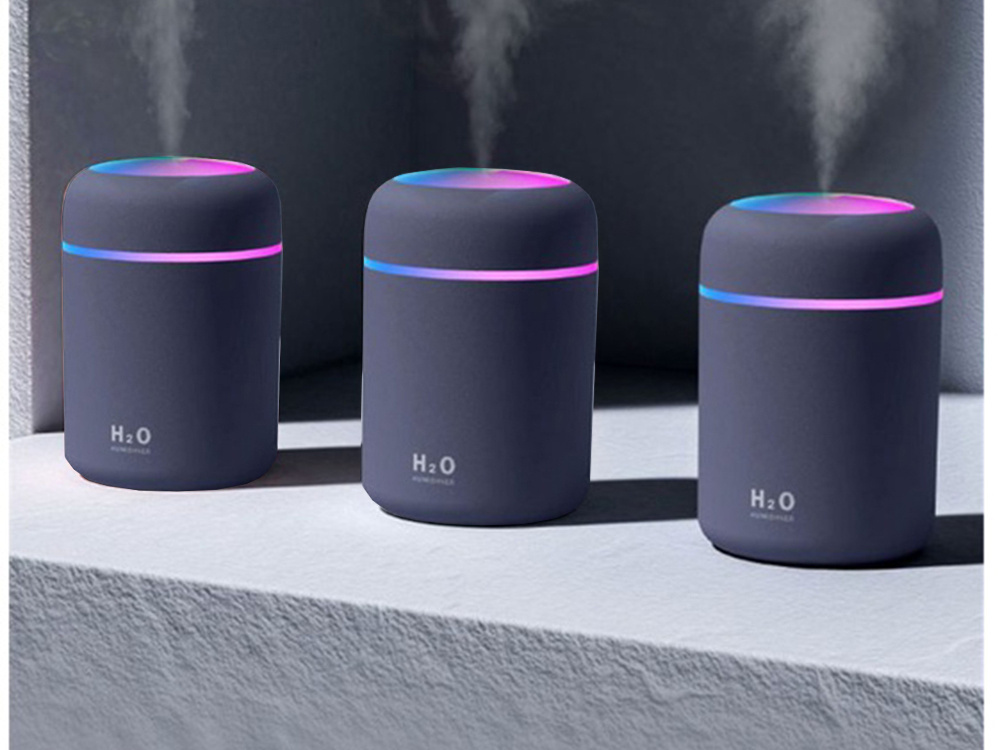 Mini USB gaisa mitrinātājs un aromātu difuzors ar RGB apgaismojumu, pelēks