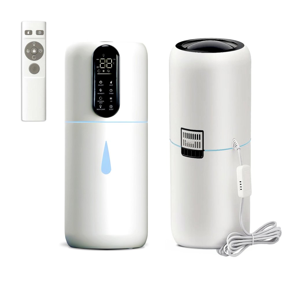 • Tālvadības pults: Ērti kontrolējiet visas funkcijas, nep pieceļoties no dīvāna, tostarp taimeri (1-12h) un pastāvīgas mitruma uzturēšanas funkciju.
