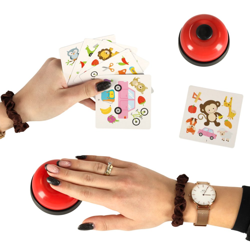 - Otrajā spēlēšanas veidā sadaliet kārtis visiem spēlētājiem vienādi un atlikušās kārtis novietojiet uz galda ar attēlu uz leju. Lai sāktu kārtu, atklājiet kārti galda centrā, katrs spēlētājs atklāj savu augšējo kārti un pēc iespējas ātrāk jāatrod simbols, kas parādās gan uz savas kārtis, gan uz galda centrā esošās. Uzvar tas, kurš pirmais piezvana zvanu un norāda uz atkārtojošo simbolu, uzvarētājs paņem savu karti no galda un noliek malā kā punktu. Pārējo spēlētāju kārtis nonāk izmešanas kaudzē! Spēle beidzas, kad spēlētājiem beigušās kārtis!