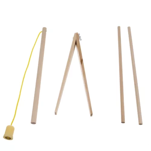 Komplektā ietilpst koka pamatne, papīra okeāna imitācija, organizators, 9 magnētiskās zivtiņas, 28 bumbiņas, makšķere, pincete un irbulīši.