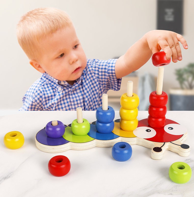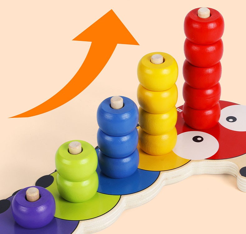 Spilgtās krāsas piesaista bērna uzmanību, savukārt krellīšu uzlikšana uz pamatnes attīsta roku un acu koordināciju, veiklību, pacietību un precizitāti. Šis koka šķirotājs ir lielisks palīgs, lai iepazīstinātu bērnu ar krāsu un skaitļu pasauli. Katrai krāsai atbilst atšķirīgs krellīšu skaits, kas palīdz apgūt skaitīšanas pamatus.