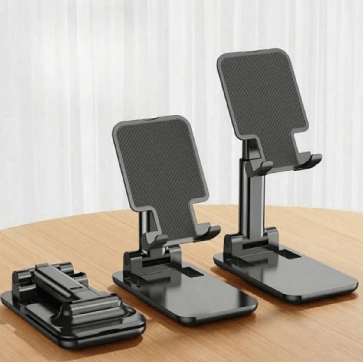 Salokāms galda statīvs telefonam un planšetdatoram, melns