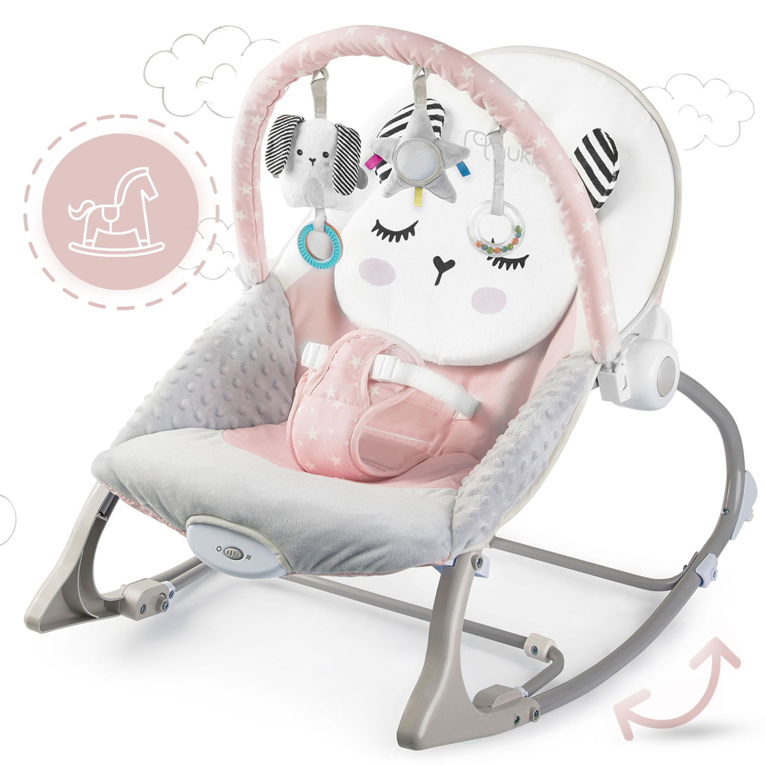 Nukido bērnu šūpuļkrēsls ar vibrāciju, rozā