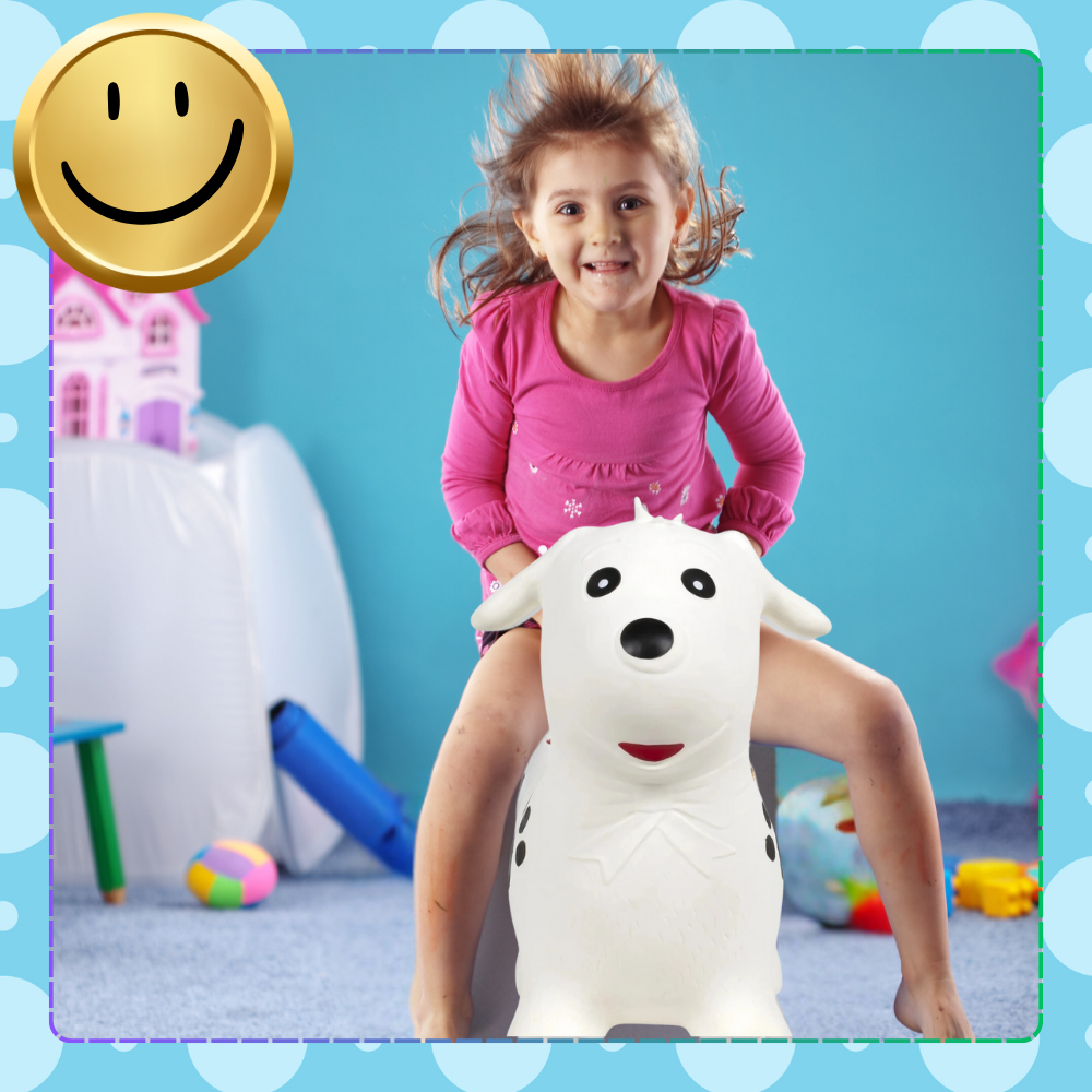 Rotaļlieta sagādā lielu prieku gan mājās, gan ārā. Bērni var sacensties lēkšanā vai vienkārši lēkt ar draugiem.