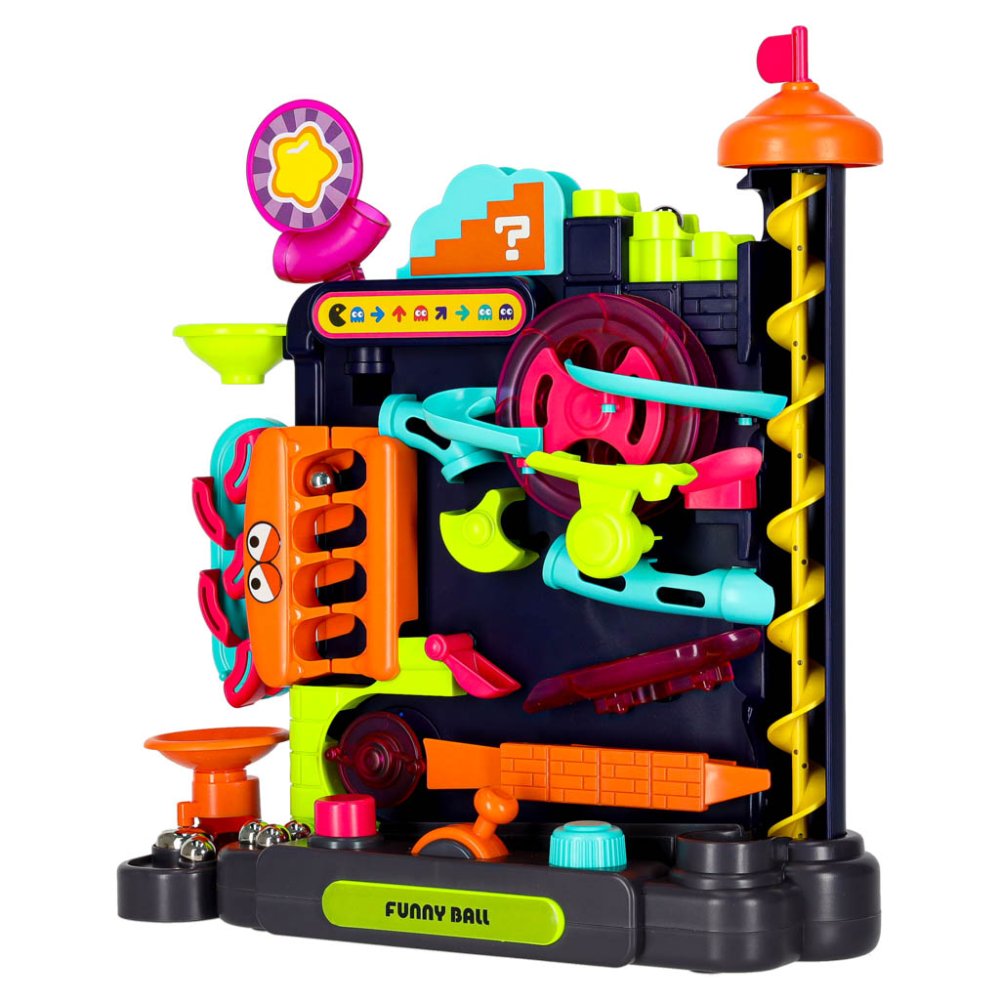Izaiciniet savu pacietību un precizitāti ar šo aizraujošo veiklības spēli! Šī bumbiņu trase ar šķēršļiem ir lieliska rotaļlieta, kas apvieno izklaidi ar svarīgu prasmju attīstību, piemēram, sīko motoriku un roku-acu koordināciju. Mērķis ir vienkāršs, bet izpildījums prasa koncentrēšanos: vadiet sešas metāla bumbiņas cauri sarežģītam labirintam līdz finišam.
