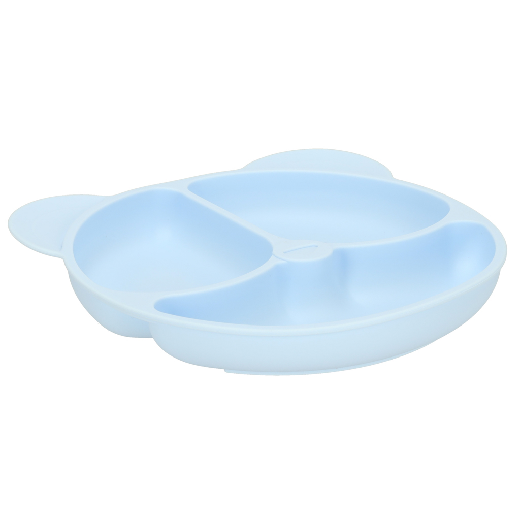- Šķīvis ar trim nodalījumiem: Ļauj ērti atdalīt dažādus produktus, mudinot bērnu nogaršot jaunas garšas un padarot ēdienu vizuāli pievilcīgāku.