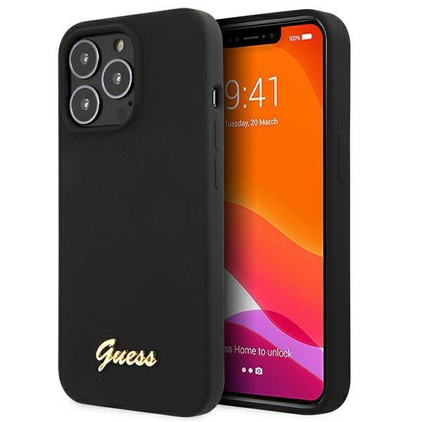 Guess iPhone 13 Pro Max vāciņš Silicone Script Gold Logo Melns
