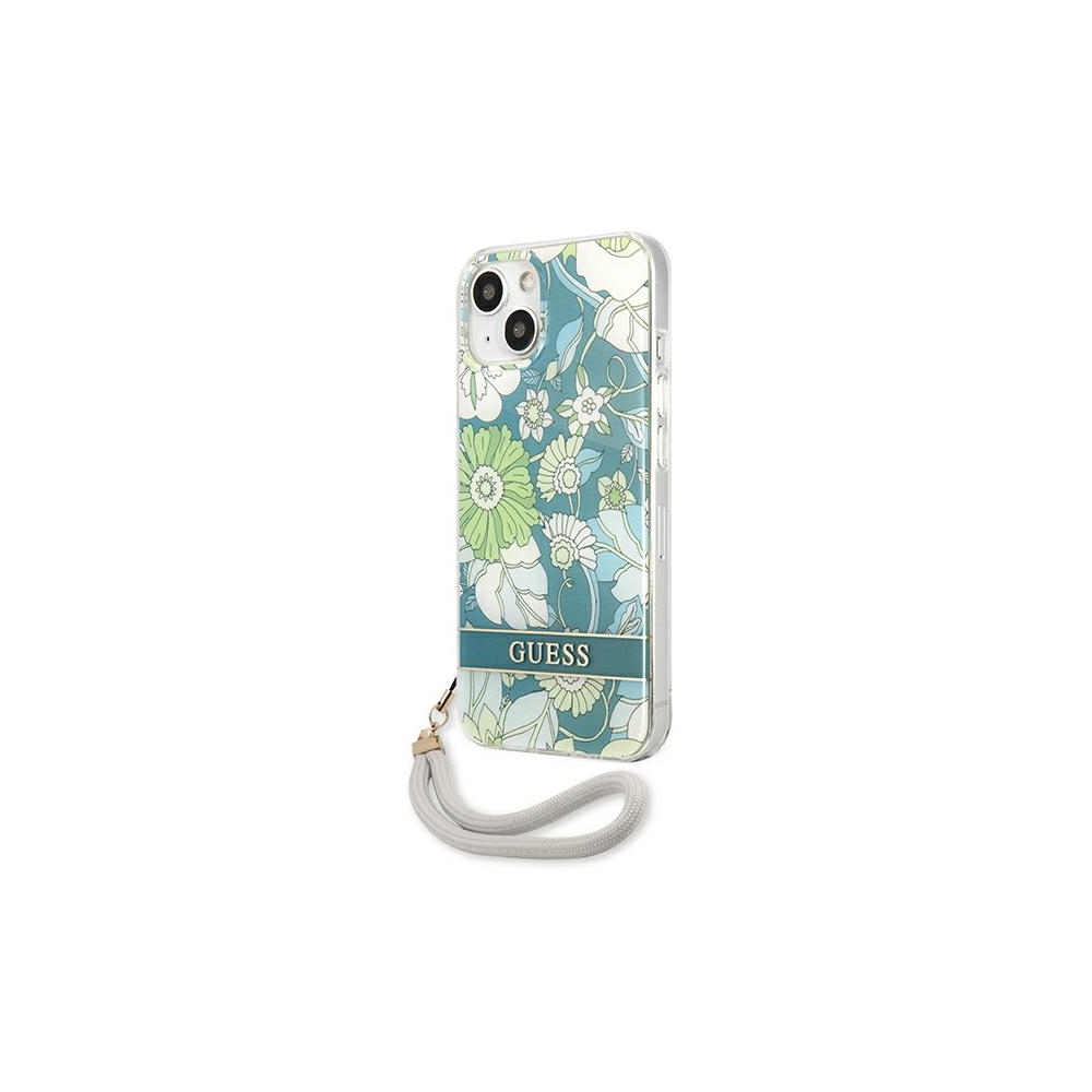 Guess iPhone 13 vāciņš Flower Strap Zaļš