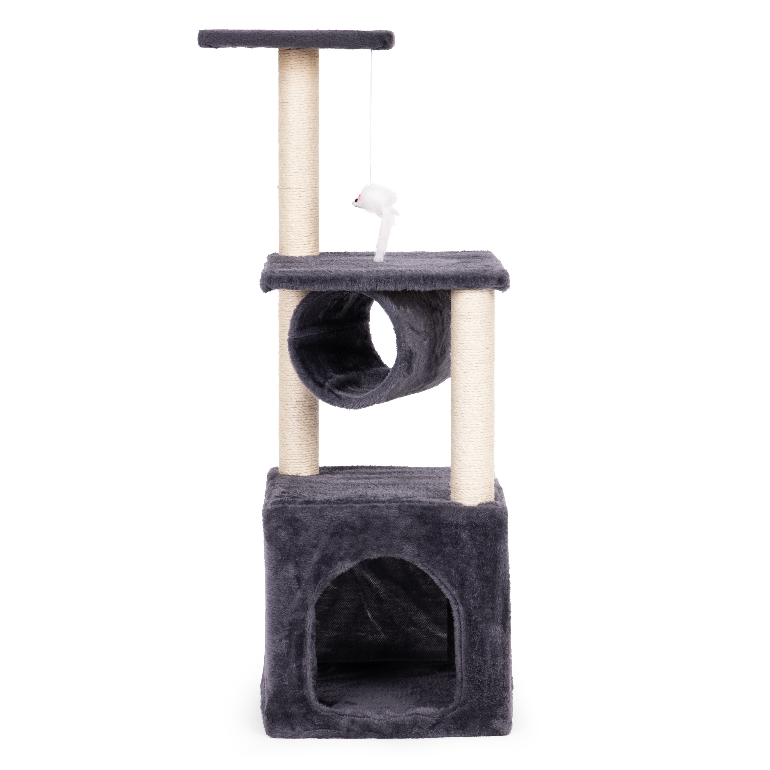 Kaķu koks Petsi ar mājiņu un skrāpējamiem stabiem, 94 cm aktivitāšu centrs, pelēks