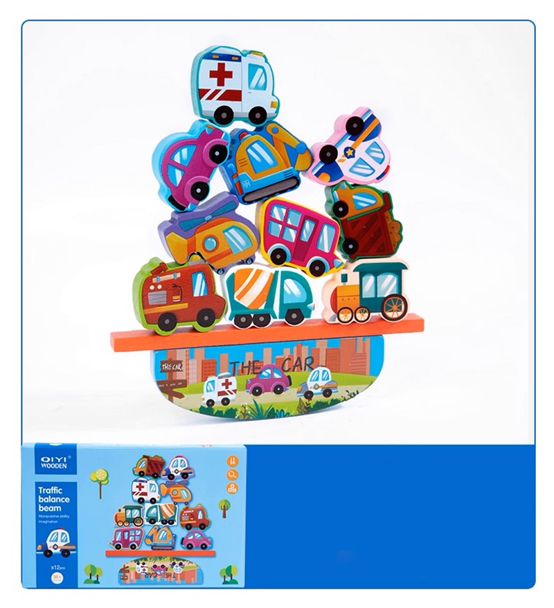 Bakalu koka balansēšanas kluču komplekts ir aizraujoša un izglītojoša rotaļlieta, kas palīdz bērnam apgūt līdzsvara principus caur rotaļām ar pilsētas satiksmes elementiem.