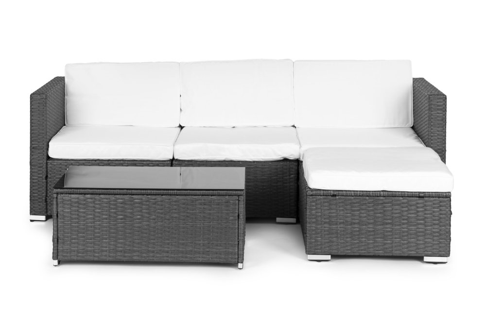 Moduļu tehnorotanga dārza stūra dīvāns ar galdiņu MultiGarden, pelēks