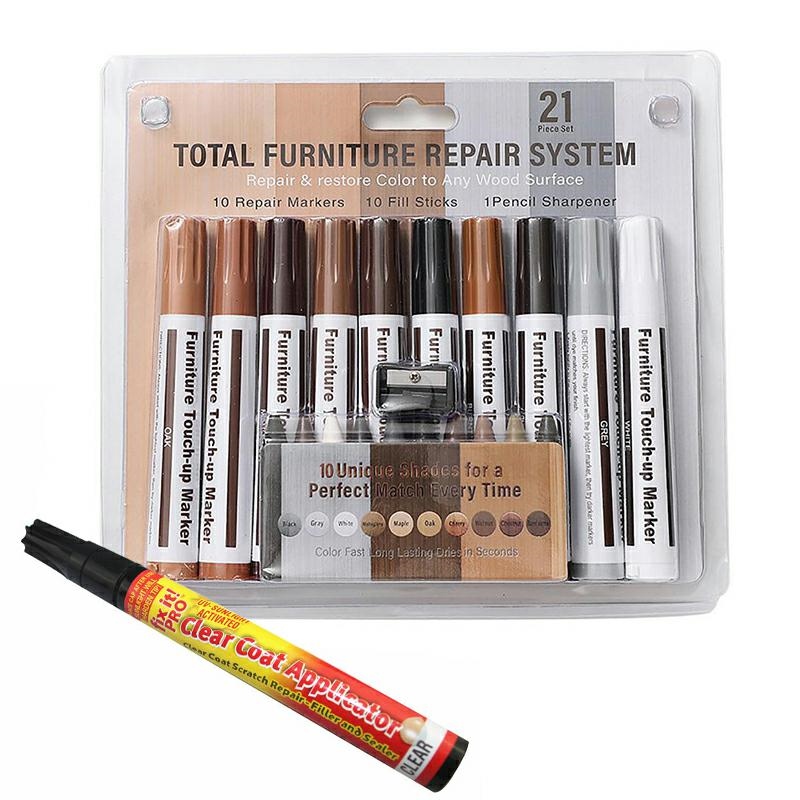 Aizmirstiet par dārgiem galdnieka pakalpojumiem. Ar šo universālo komplektu jūs varat ātri un efektīvi nomaskēt skrāpējumus, iespiedumus un citus nelielus defektus uz galdiem, krēsliem, grīdām vai durvīm. Tas ir ideāls risinājums ikvienam, kurš vēlas uzturēt savas koka mēbeles nevainojamā stāvoklī.