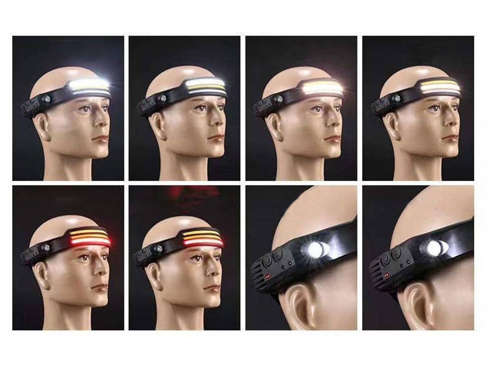 Uzlādējams LED galvas lukturis ar kustības sensoru un 3 gaismas joslām, USB-C