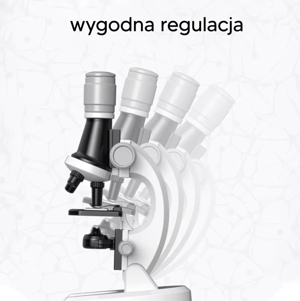 Izglītojošs mikroskops bērniem ar lielu palielinājumu, ideāli piemērots pirmajiem soļiem zinātnē. LED apgaismojums nodrošina ērtu un skaidru preparātu novērošanu. Rotējošā galva ar trim objektīviem ļauj mainīt palielinājumu (100x, 400x, 1200x). Komplektā ietilpst visi nepieciešamie piederumi: priekšmetstikliņi, mēģenes un papildu instrumenti.