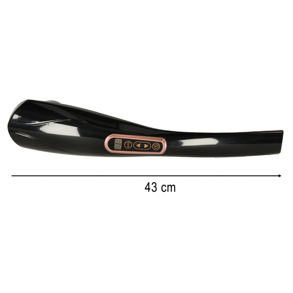 Ērts masāžas aparāts ar garu, ergonomisku rokturi ļauj viegli sasniegt muguru, kaklu un plecus, atvieglojot saspringtus muskuļus pēc darba vai treniņa.