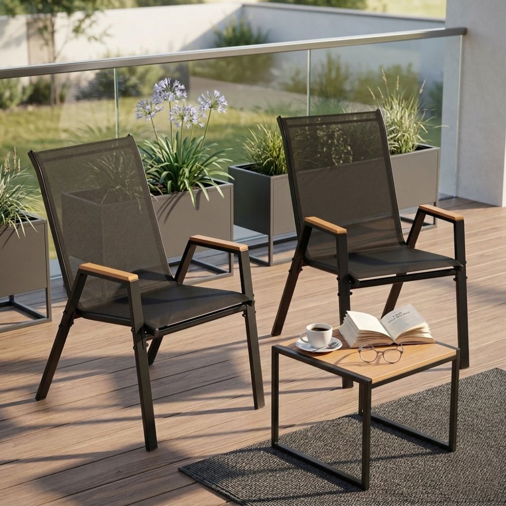 2 Dārza Krēslu Komplekts MultiGarden Terasēm un Balkoniem, Melns