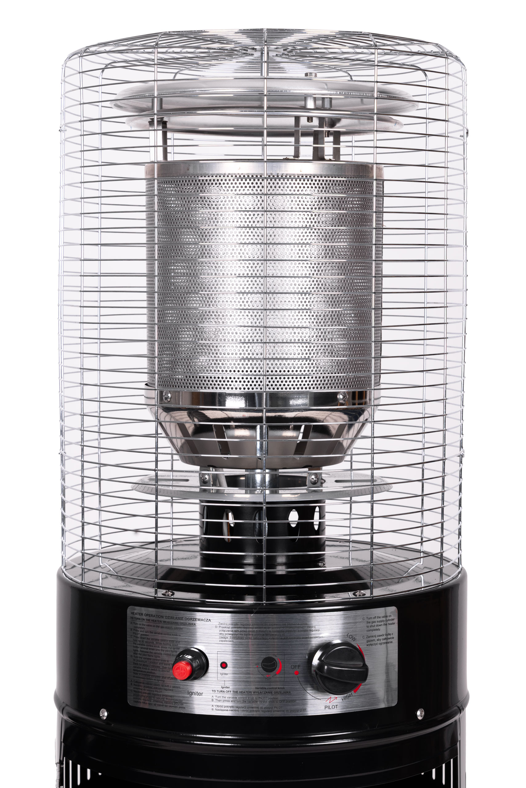 Šis sildītājs izceļas ar modernu cilindrisku dizainu, pulverkrāsota tērauda korpusu un rūdīta stikla elementiem. Tas ir ne tikai praktisks siltuma avots, bet arī elegants papildinājums jebkurai āra telpai. Iebūvētie ritentiņi atvieglo pārvietošanu, bet slēgtais nodalījums gāzes balonam nodrošina estētisku izskatu un drošību.