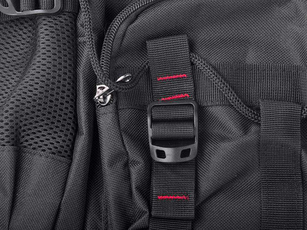 Mugursoma ir aprīkota ar elastīgām sānu tīkla kabatām un kompresijas siksnām, kas ir lieliski piemērotas trekinga nūju transportēšanai. Tas ļauj ērti paņemt līdzi nepieciešamo aprīkojumu kalnos, pārgājienā vai izdzīvošanas ekspedīcijā. Nūjas tiek droši piestiprinātas pie mugursomas sāniem, nodrošinot drošību un ātru piekļuvi.