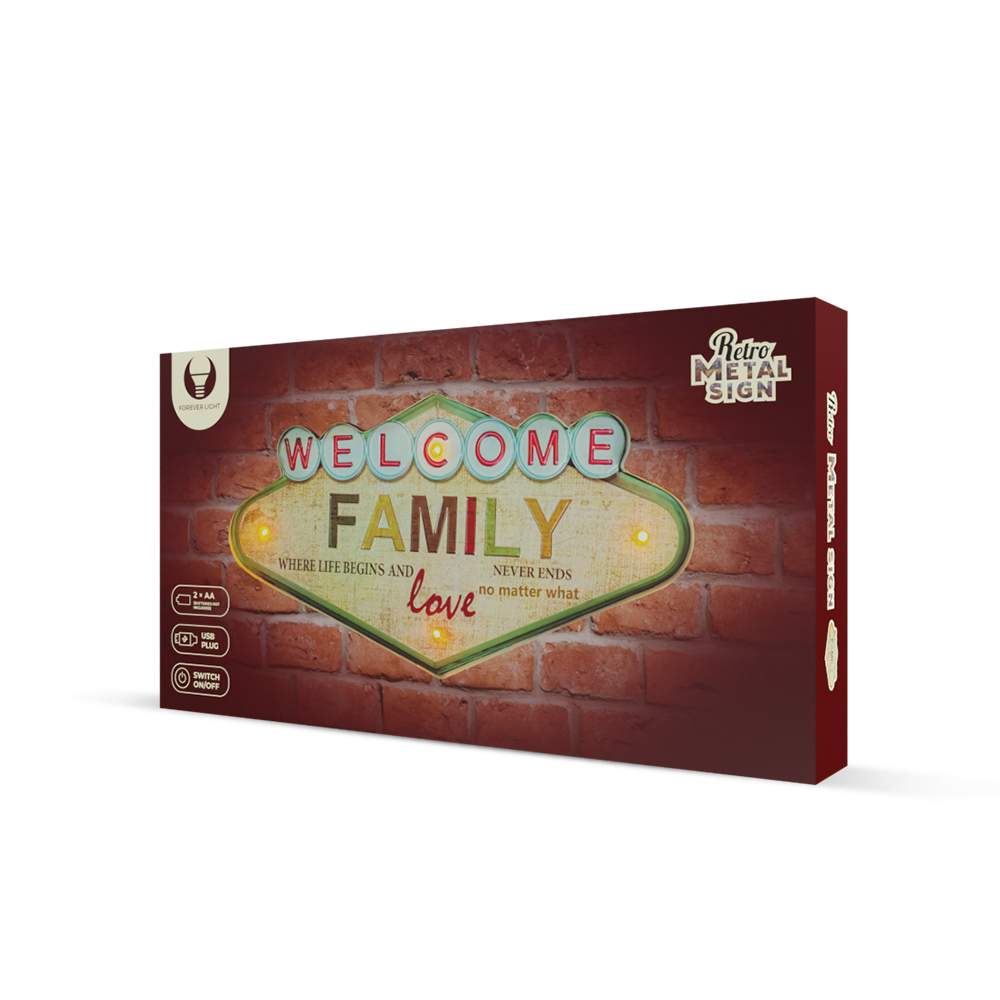 LED Retro Metāla Zīme Welcome Family Forever Light