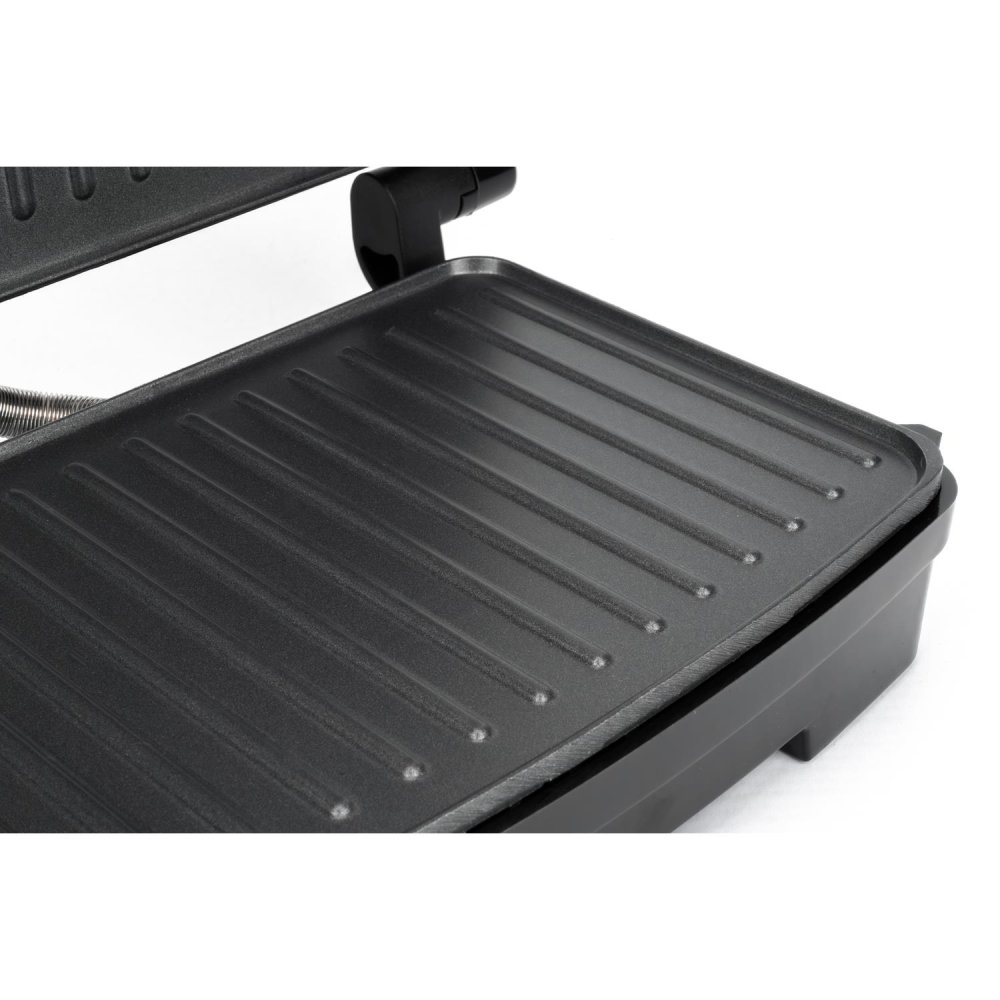 Aprīkots ar plašu 23 × 15 cm rievotu grila plāksni, šis sviestmaižu tosteris ļauj vienlaikus pagatavot vienu lielu vai divas mazākas sviestmaizes. Uzlabotais nepiedegošais pārklājums garantē vienmērīgu apcepšanu un nodrošina, ka ierīces tīrīšana ir bez piepūles. Pateicoties jaudīgajam 1000 W sildelementam, ierīce uzsilst acumirklī, ietaupot jūsu dārgo laiku steidzīgos rītos.