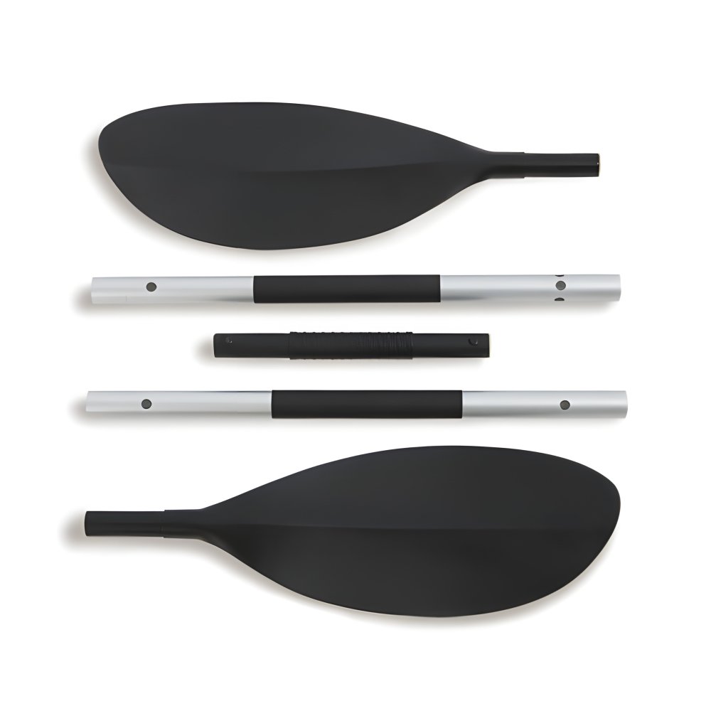 Divkameru konstrukcija nodrošina papildu drošību – pat bojājuma gadījumā otra kamera saglabā peldspēju. I-Beam grīda uzlabo stabilitāti un komfortu arī sarežģītākos apstākļos. Komplektā esošie alumīnija airi ir viegli un izturīgi, ar ergonomiskiem rokturiem drošai satveršanai arī mitros apstākļos.