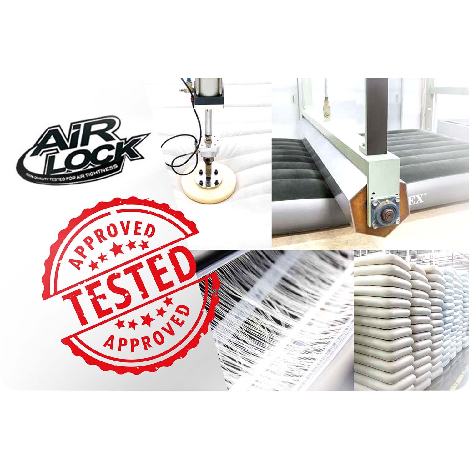 Fiber-Tech tehnoloģija ir inovatīvs risinājums, ko izstrādājis INTEX, un tas ievērojami uzlabo dīvāna kvalitāti un izturību. Tradicionālo gaisa kameru vietā iekšējā konstrukcija balstās uz simtiem īpaši izturīgu poliestera šķiedru, kas veido vienotu, stabilu struktūru. Vissvarīgākais ir tas, ka šīs šķiedras laika gaitā neizstiepjas, tāpēc dīvāns saglabā savu formu un īpašības pat pēc daudziem piepūšanas un lietošanas cikliem.