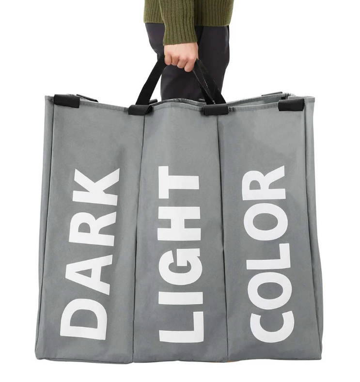Organizators Šķirošanas Veļas Grozs ar 3 Nodalījumiem un Rokturiem, 130L l Laundry basket with 3 compartments with handles
