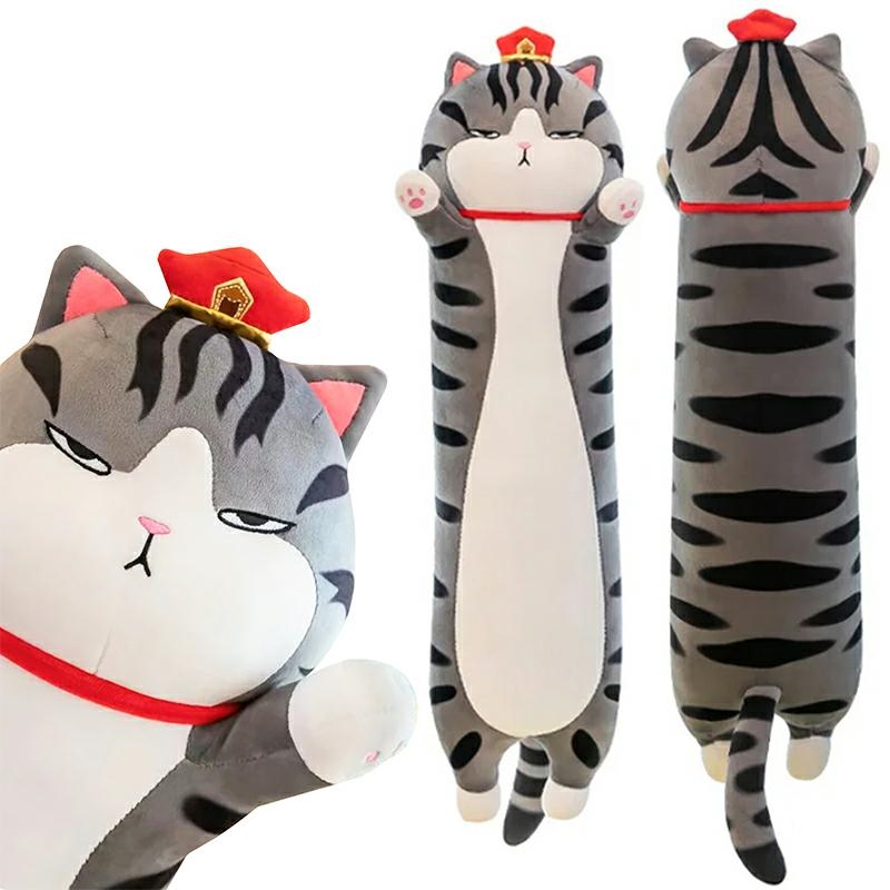 Mīkstā bērnu rotaļlieta talismans, garš plīša spilvens kaķis - batons, 90cm | Plush Cat-shaped Hugging Pillow