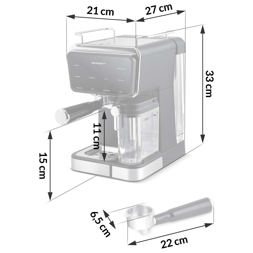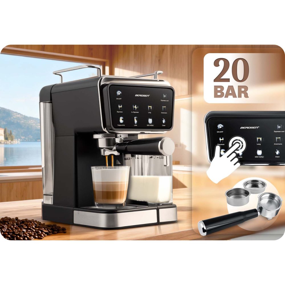Berdsen BD-773 20 Bar pusautomātiskais kafijas automāts ar piena putotāju, melns