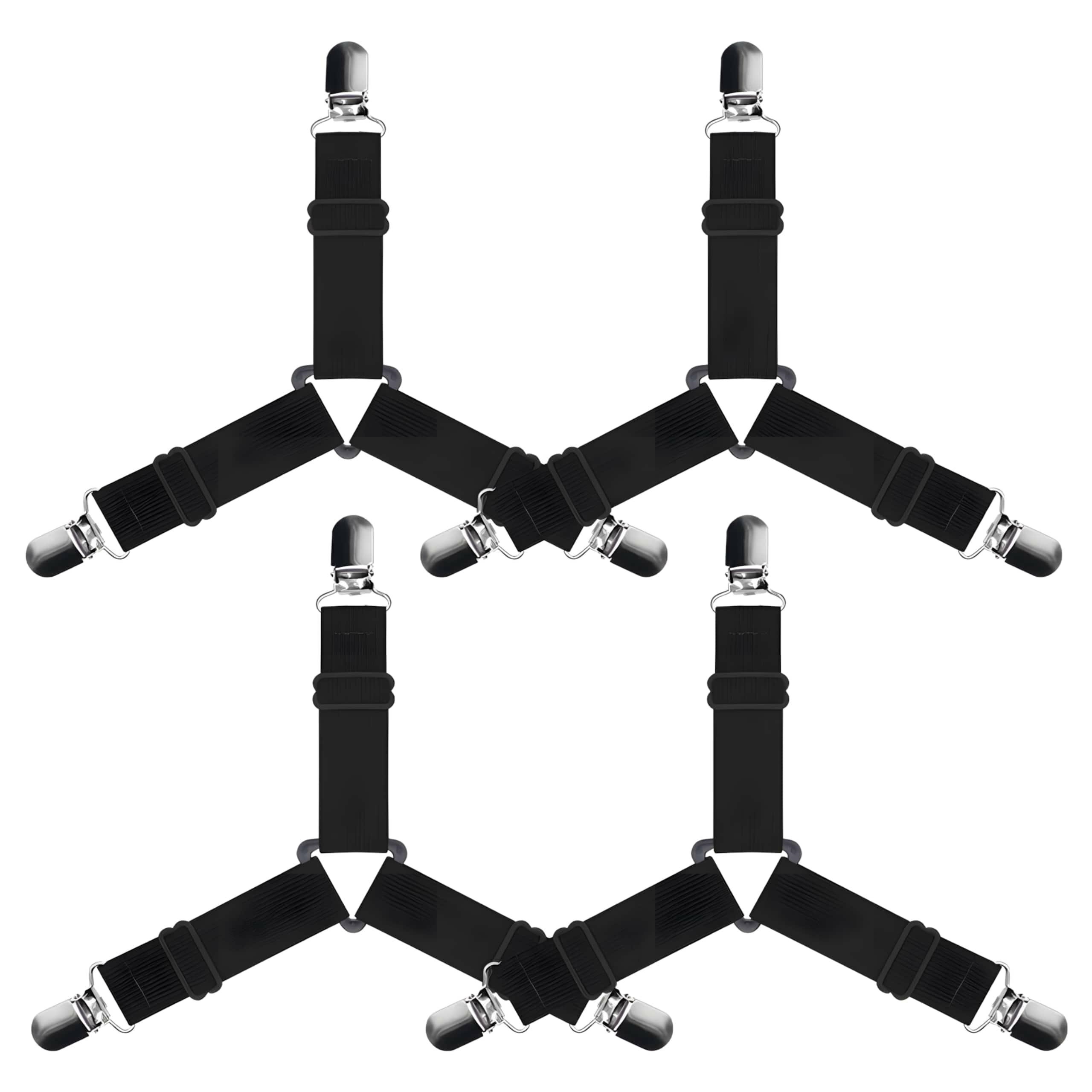 Regulējami palagu turētāji ar stiprinājumiem, 4 gab., melni