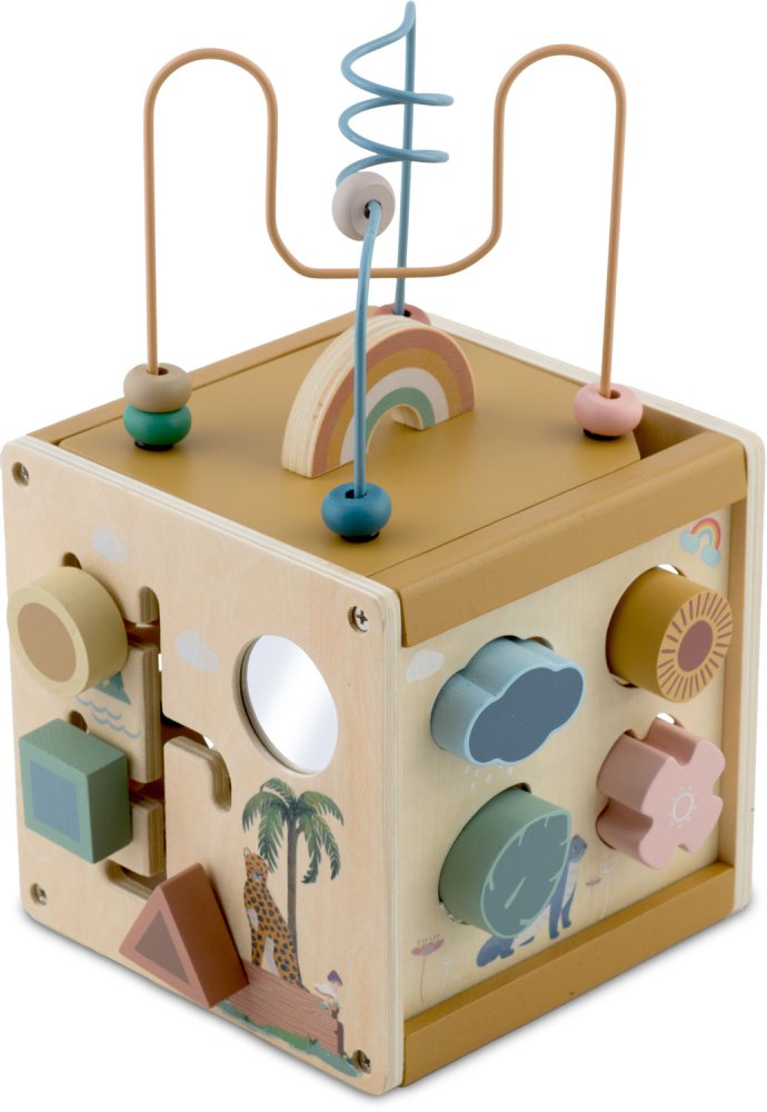 Koka rotaļlieta, sorteris, sensorais kubs NK-861 Nukido | Wooden Sensory Toy Cube