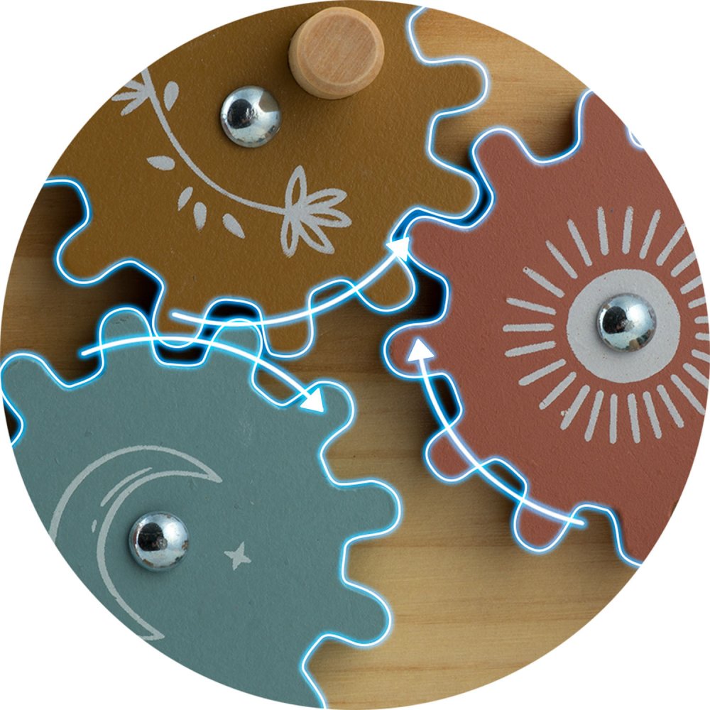 Поскольку доска оснащена различными механизмами, такими как замки, шестеренки и кнопки, она способствует развитию мелкой моторики.Широкий спектр элементов с различной фактурой и подвижными частями стимулирует тактильные и зрительные ощущения.