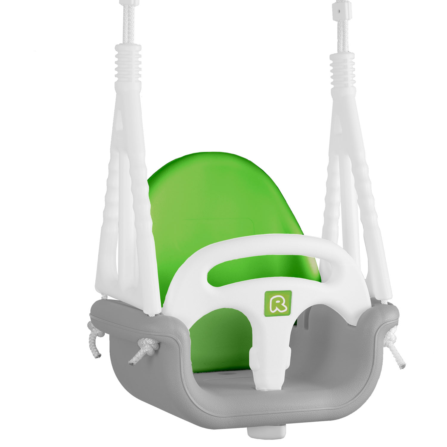 Мы знаем, как важна безопасность. Качели изготовлены из высококачественного пластика с нескользящей поверхностью сиденья. Прочные регулируемые веревки (до 130 см) оснащены металлическими пряжками и специальными пластиковыми накладками, которые защищают руки ребенка от натирания и повышают устойчивость во время качания.