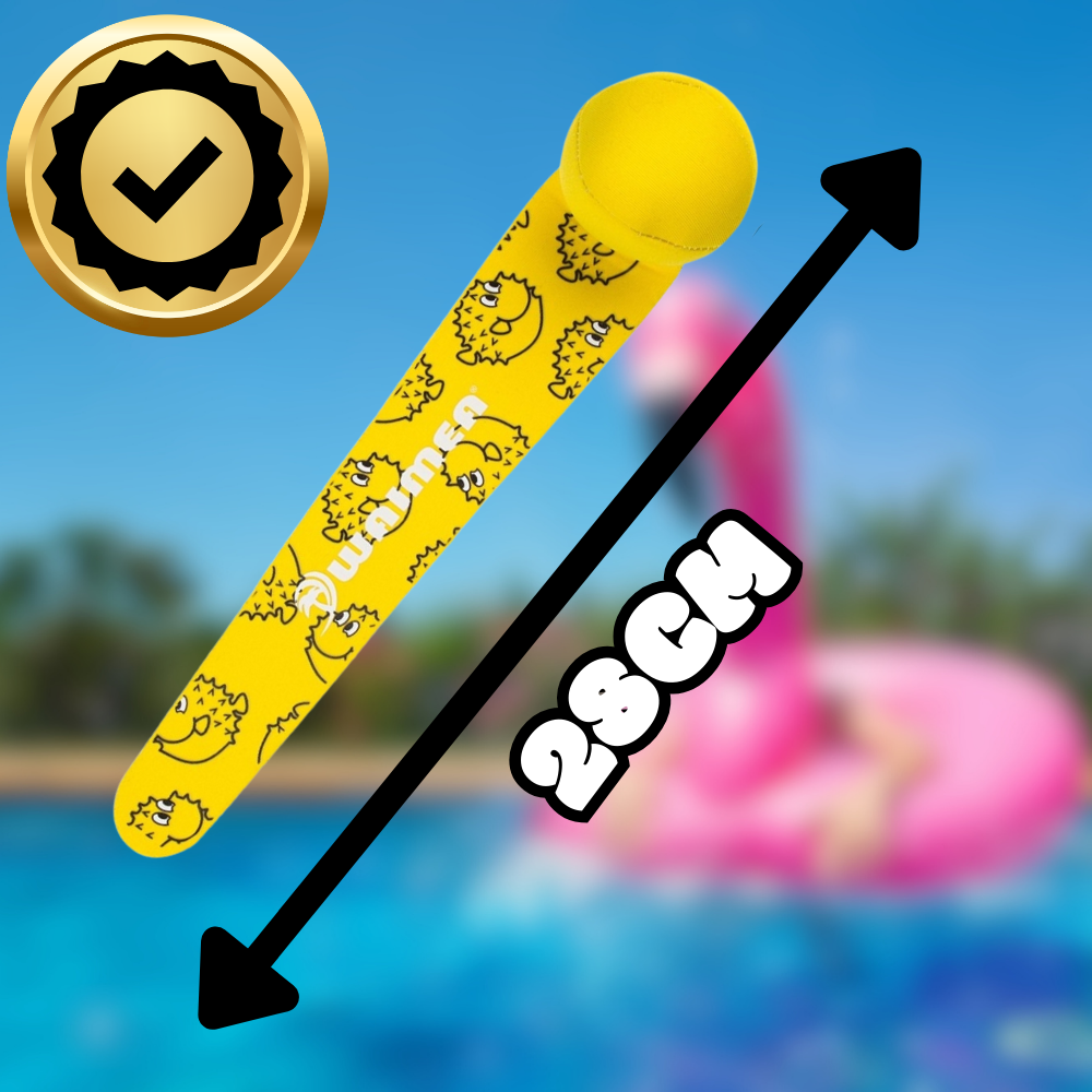 Набор из трех неопреновых палочек WAIMEA идеально подходит для обучения нырянию. Благодаря наполнению из песка, палочки быстро опускаются на дно, что мотивирует детей нырять и доставать их. Это позволяет малышам совмещать обучение с весельем, эффективно развивая свои навыки в воде.