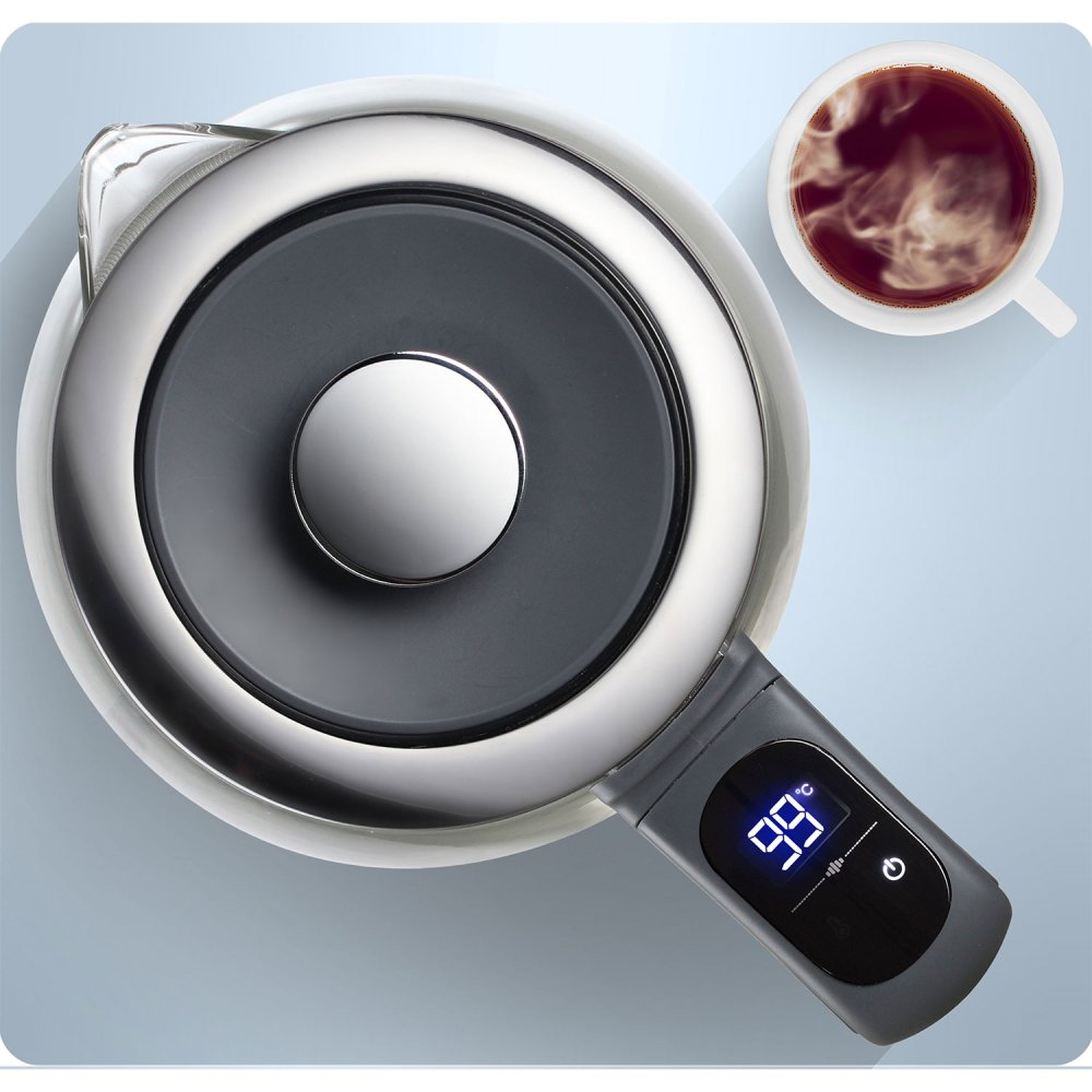 Berdsen BD-711 стеклянный электрический чайник 1,7 л с сенсорным дисплеем нагревает воду от 40 °C до 100 °C и поддерживает тепло до 2 часов, делая каждый напиток идеальным.