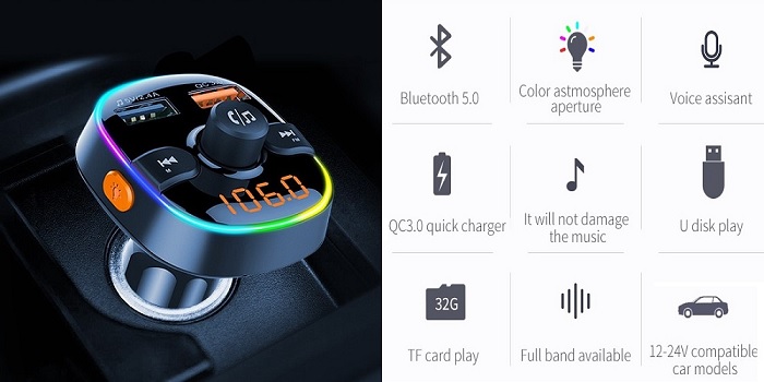 FM-волновой модулятор с функцией быстрой зарядки. Этот автомобильный модулятор предназначен для передачи аудиофайлов MP3/WMA с USB-накопителя, MP3-плеера или смарт-устройства на автомобильное радио с использованием радиоволн FM.