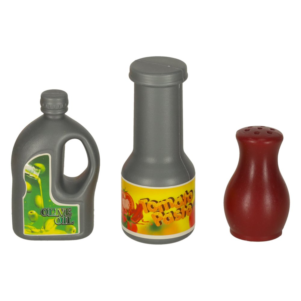Разнообразные овощи, фрукты и другие продукты разделяются на части, что позволяет малышу тренировать мануальные навыки, «нарезая» их с помощью безопасного пластикового ножа. В набор также входят тарелки, дуршлаг и другие кухонные аксессуары, которые добавляют игре реалистичности.