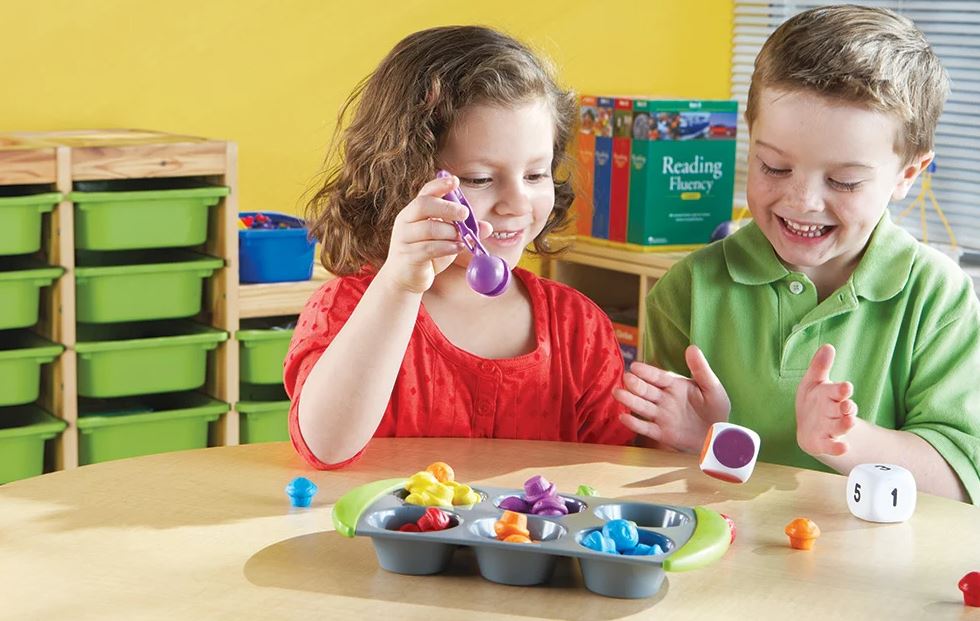 Набор Mini Muffin Match Up также позволяет легко научиться считать. Например, вы можете бросать кубики с цифрами и цветами, а затем, исходя из того, что выпадет, предложить ребенку дать вам нужное количество кексов определенного цвета. Также неплохо составить короткие рассказы, например, «У меня есть 2 желтых кекса, а мама дала мне 2 зеленых» — задачей ребенка будет посчитать, сколько кексов вместе. Во что еще стоит поиграть? Разложите все кексы на подносе и бросьте кубик с цифрами – в зависимости от того, какое число выпадет, предложите ребенку достать пинцетом соответствующее количество предметов. Таким образом вы не только попрактикуетесь в счете, но и поработаете над ручными навыками!