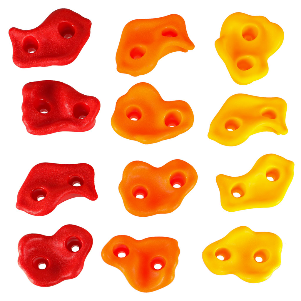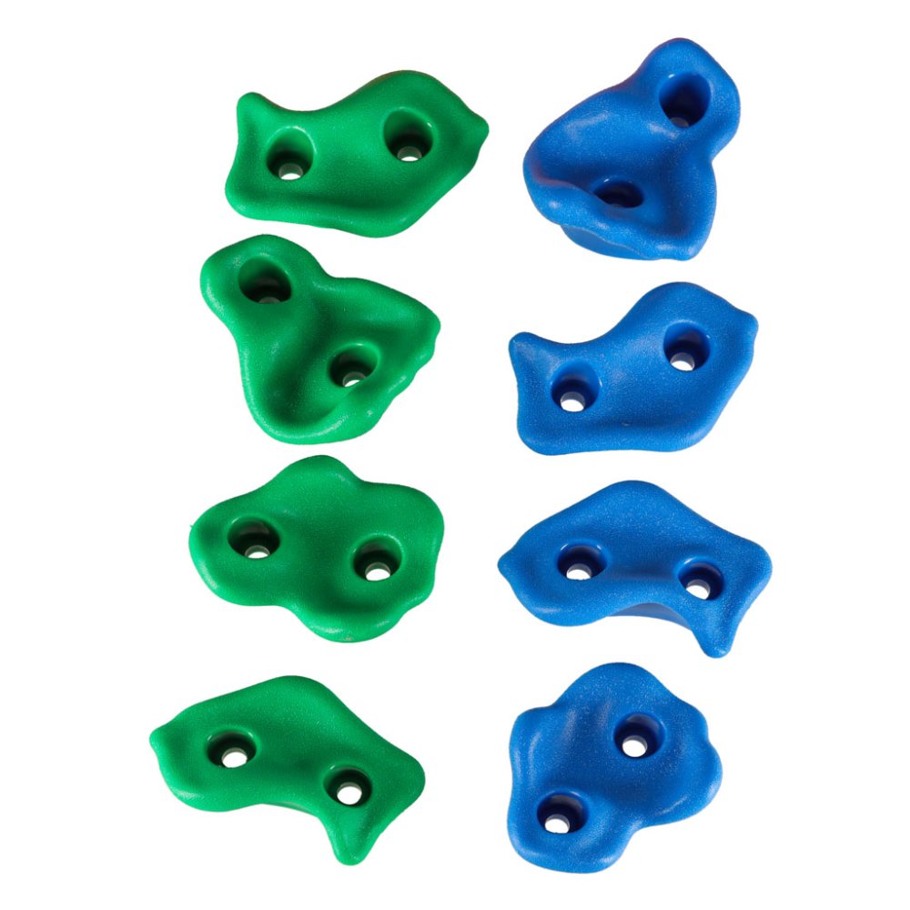 Набор включает 20 разнообразных камней для скалолазания, позволяющих создавать маршруты, адаптированные к уровню подготовки ребенка. Форма и цвет разработаны с учетом потребностей самых маленьких — каждый зацеп имеет удобный профиль и безопасен для детских рук и ног. Они изготовлены из прочного полиэтилена (PE), который гарантирует устойчивость к повреждениям и погодным условиям. Дождь, снег или жара — зацепы сохранят свои свойства и внешний вид на долгие годы. Вы легко сможете установить их на дерево, бетон, плиту OSB или беседку.