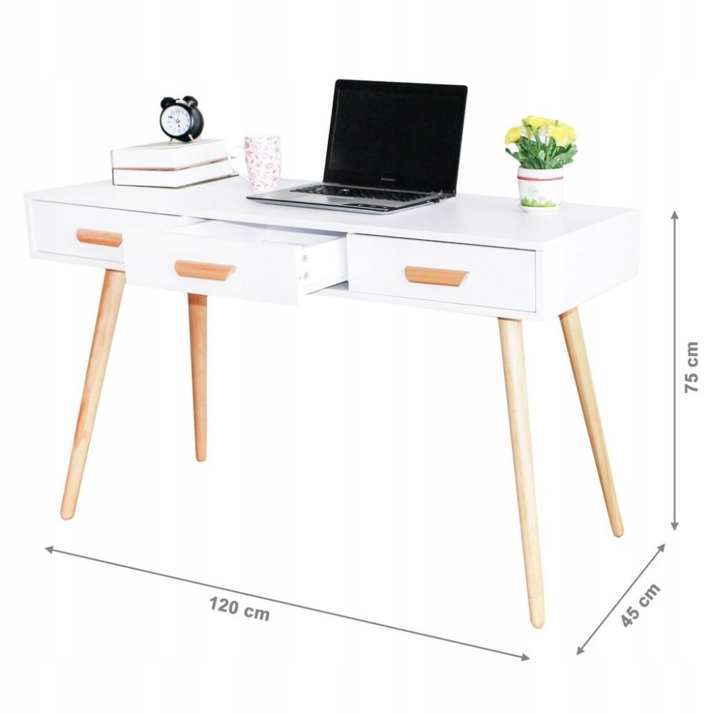 Современный письменный стол-консоль с 3 ящиками, туалетный столик, белый