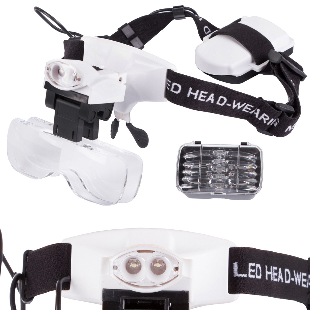 Часовая лупа-очки с 2 LED и 5 сменными линзами, черно-белая