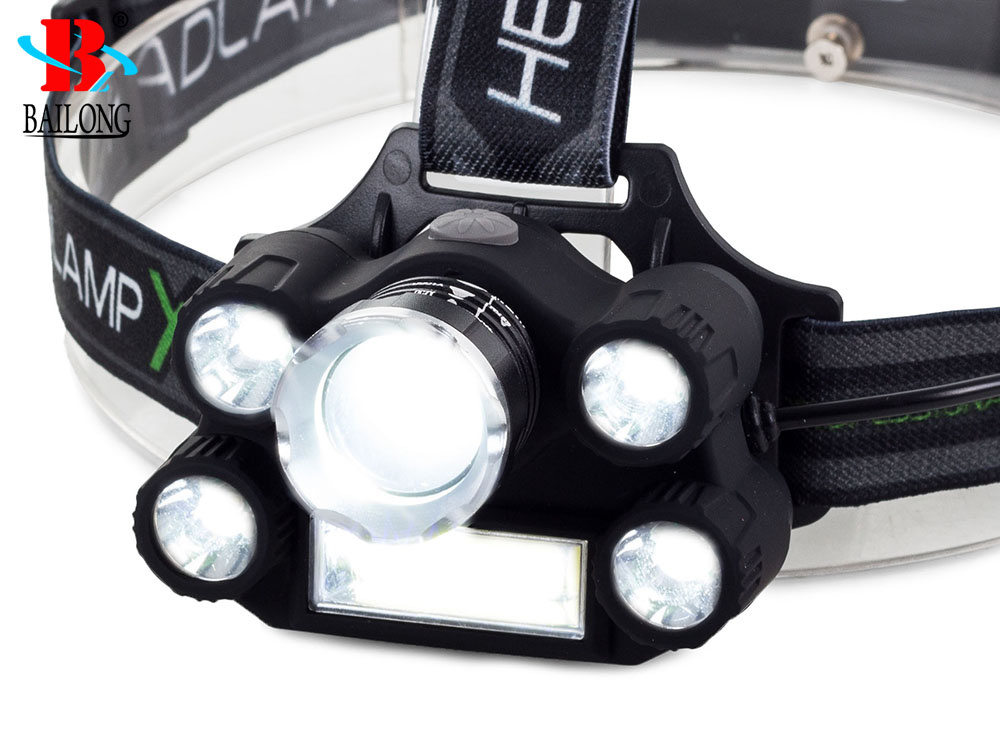 Аккумуляторный налобный фонарь Bailong T63 5x LED COB CREE XM-L T6 с зумом