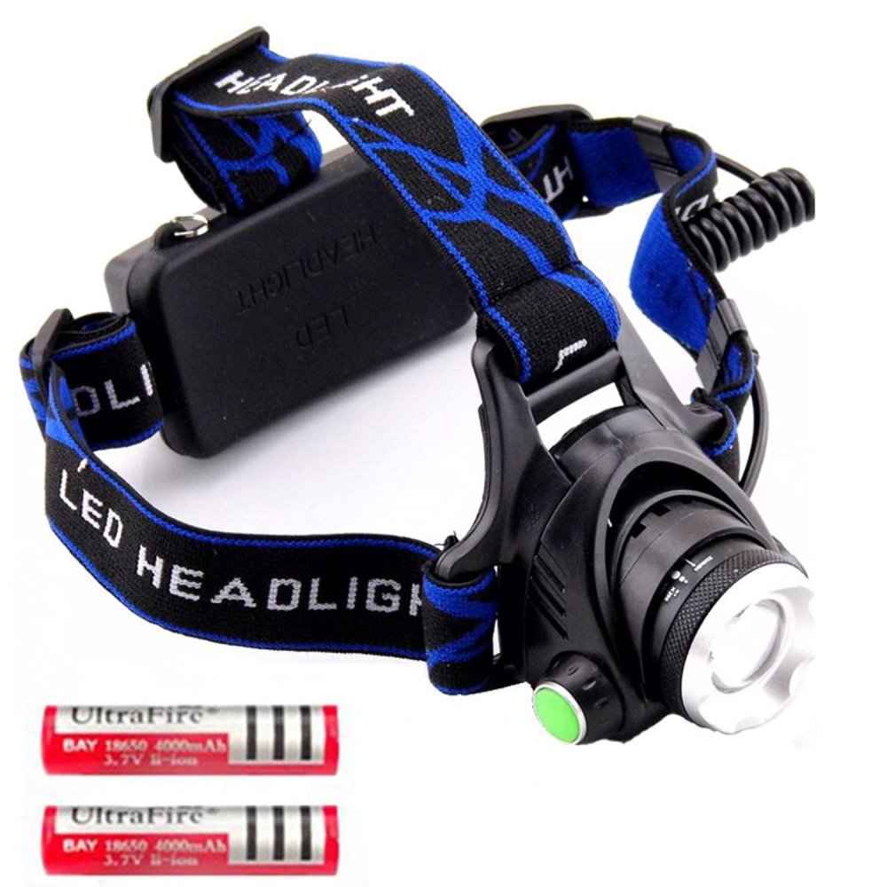 Мощный налобный фонарь LED T6 с зумом и 2 аккумуляторами 2600mAh