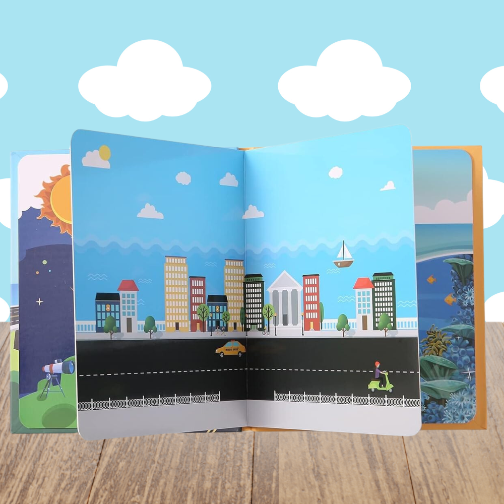 - Разнообразные сценарии: Каждая страница представляет собой новый тип дороги — горная тропа, город, шоссе, море и даже путь в космос! Это бесконечное приключение, развивающее воображение и креативность.