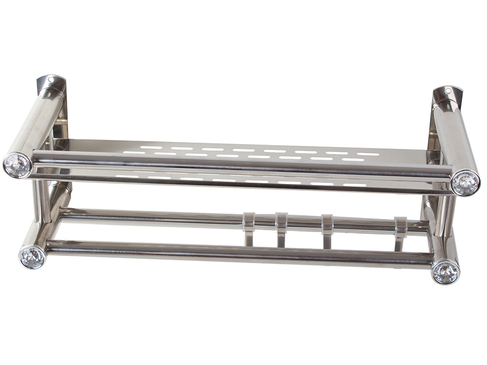 Полка изготовлена из легкого алюминия. Она украшена четырьмя кристаллами, которые придают полке элегантность.