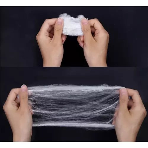 Паутина изготовлена из хлопка, что обеспечивает реалистичный вид и хорошую эластичность.