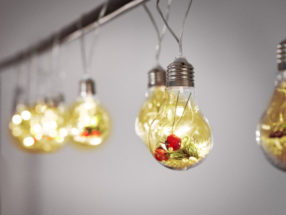 Уникальная декоративная гирлянда в виде больших лампочек с красивым украшением внутри украсит любой интерьер и привнесет новогоднее волшебство.