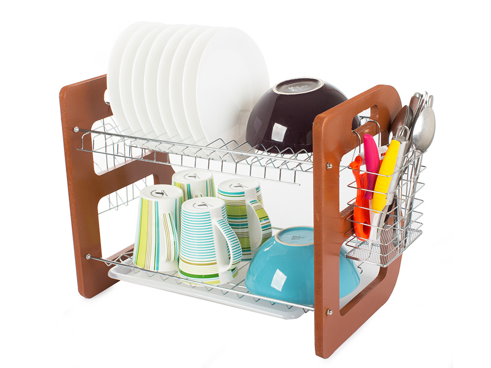 Двухуровневая Подставка для Сушки Посуды, Деревянная