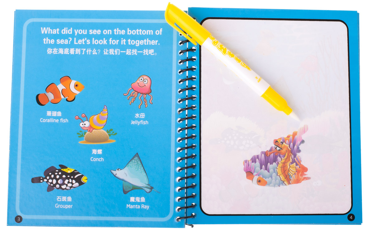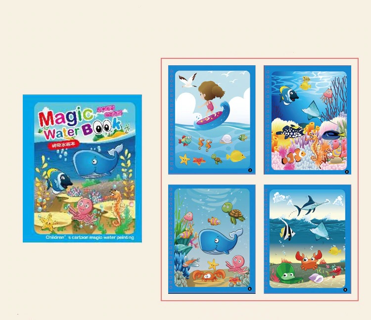 Детская Водная Раскраска Альбом с Маркером, Морские Животные | Kids Water Drawing Coloring Book
